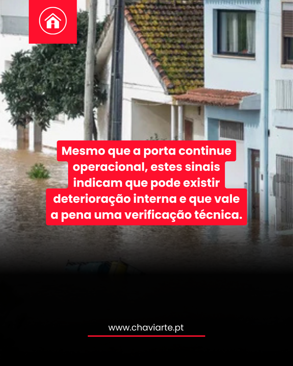 Mesmo que a porta continue operacional, estes sinais indicam que pode existir deterioração interna e que vale a pena uma verificação técnica.