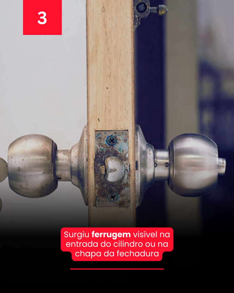 - Surgiu ferrugem visível na entrada do cilindro ou na chapa da fechadura